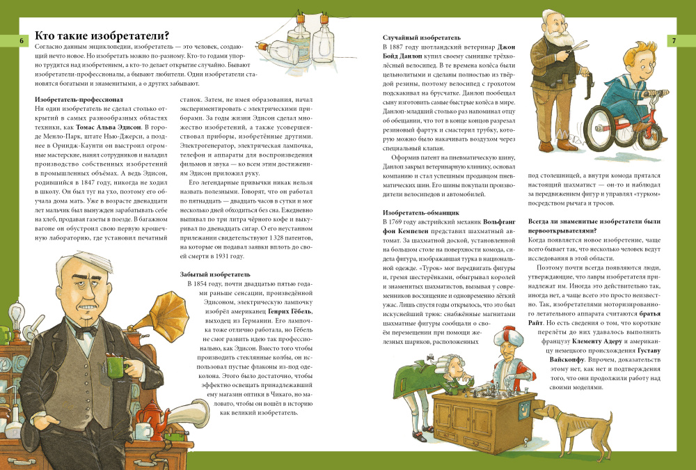 Велосипед, компьютер, телевизор и телефон — всё это было кем‑то изобретено. Что же нужно изобретателю для работы? Отличные идеи, знания и умения в области техники, терпение, а ещё изрядная порция удачи! В этой книге вы найдёте интересные истории и весёлые иллюстрации о самых известных изобретателях и их открытиях. Вы узнаете, как они смогли превратить простые идеи в успешные изобретения, без которых невозможно представить себе современный мир!